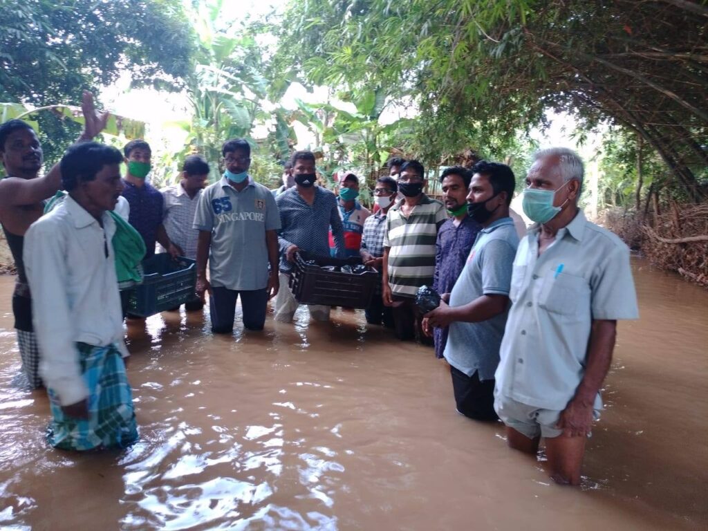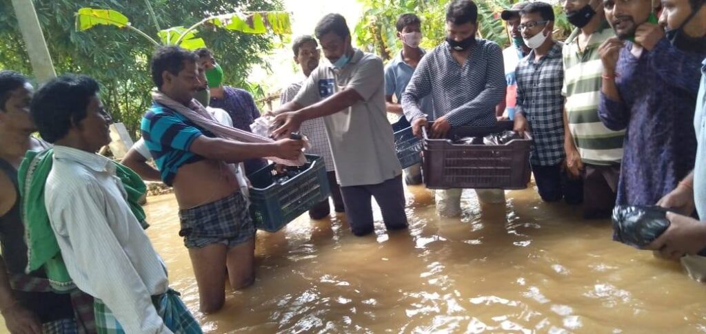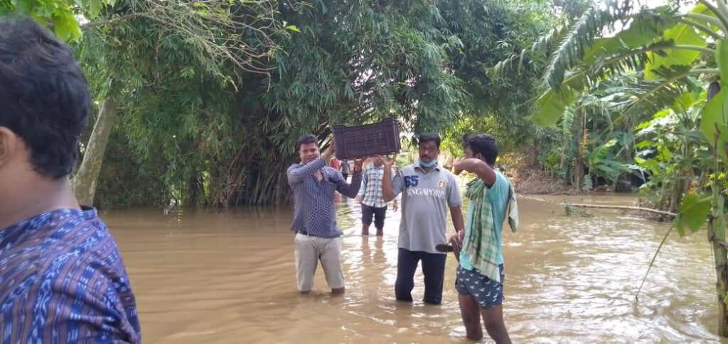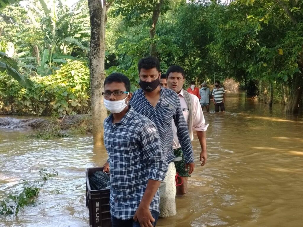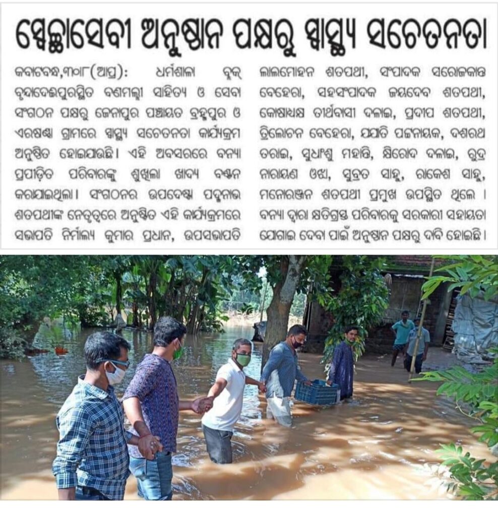 Berhampur and Ersandh of Jenapur village panchayat. The Banamalli Institution has distributed food and health awareness programs during the unspeakable plight of people affected by the floods in the region.